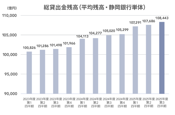 | 総貸出金残高(平残) | 92,342 | 93,821 | 98,150 | 101,966 | 105,299 |