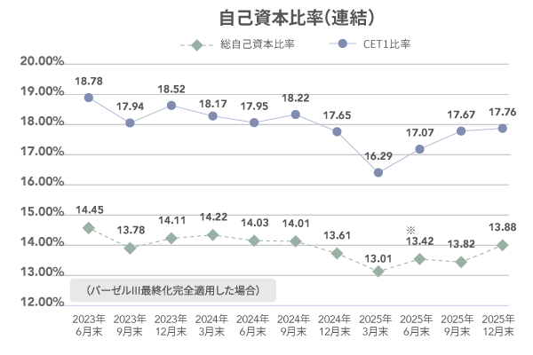 上段:総自己資本比率(連結) / 下段:CET1比率